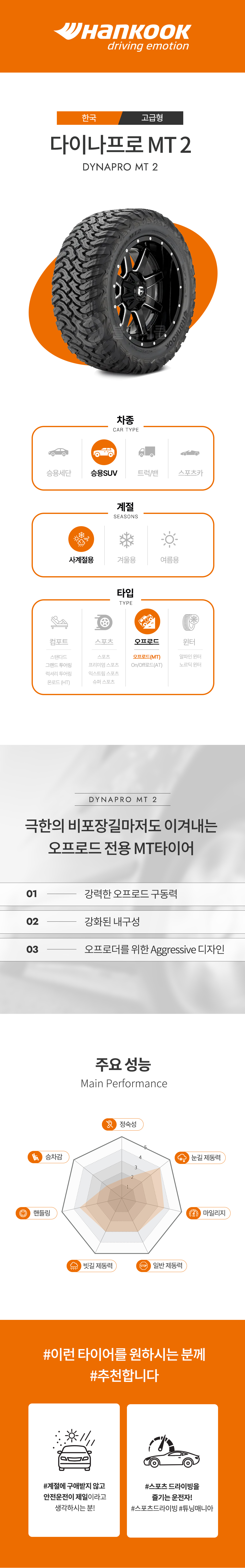 한국타이어 RT03 28" MT 타이어 조합으로