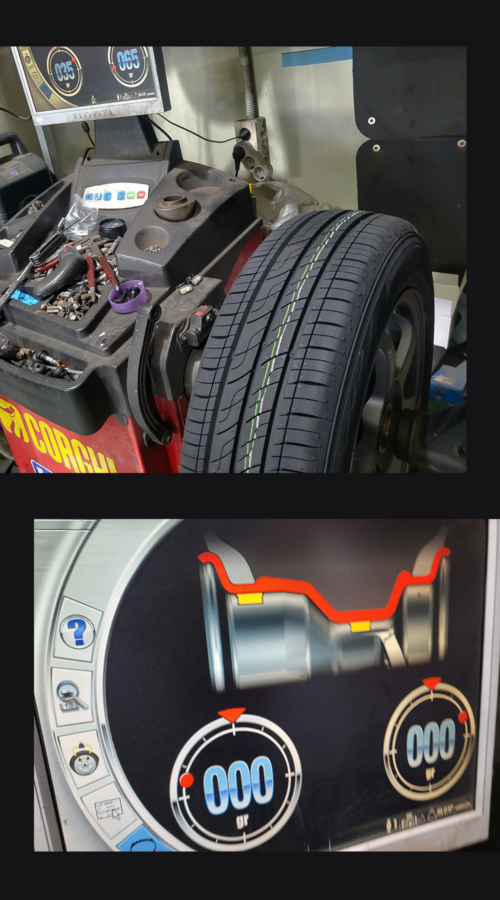이태리 고르기社 휠밸런서로 앞,뒤 네본모두